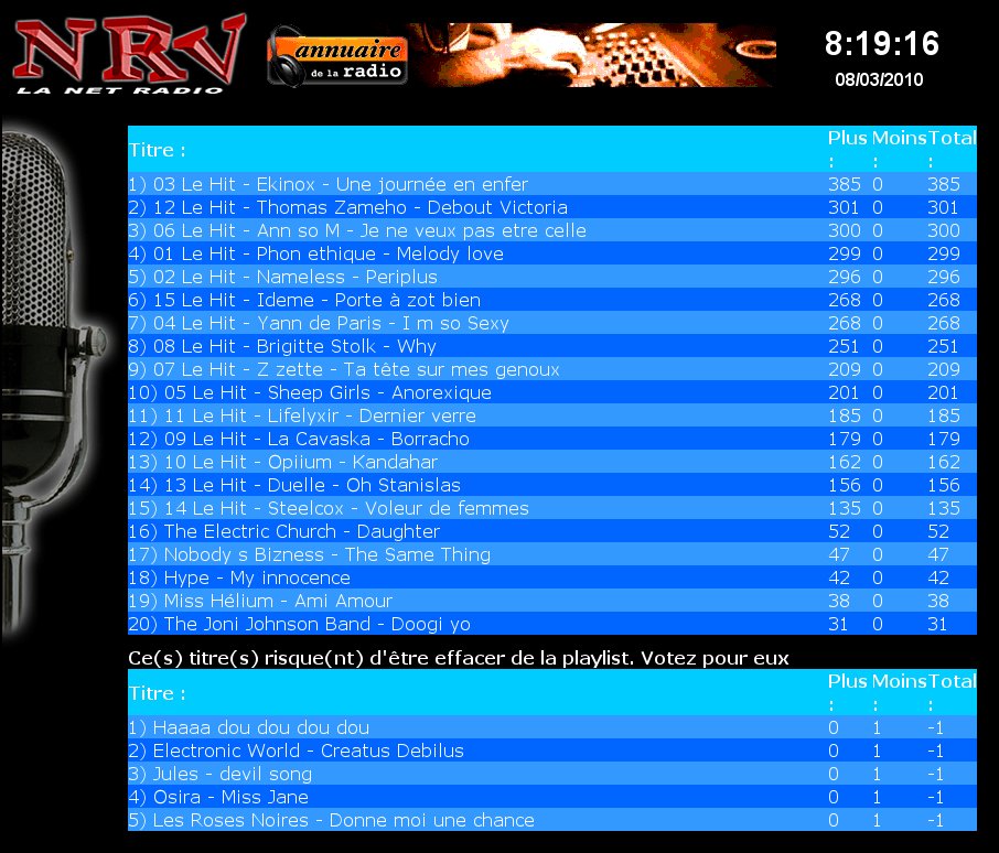March 2010 Debout Victoria ranks second in the hit radio NRV